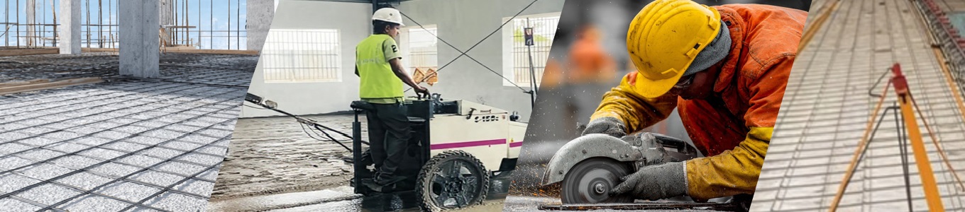 The structure is prepared for concrete to be poured over the reinforcement mesh which ensures the final slab can handle necessary daily loads and structural stresses. Reinforced concrete columns are visible to support the completed slab structure.